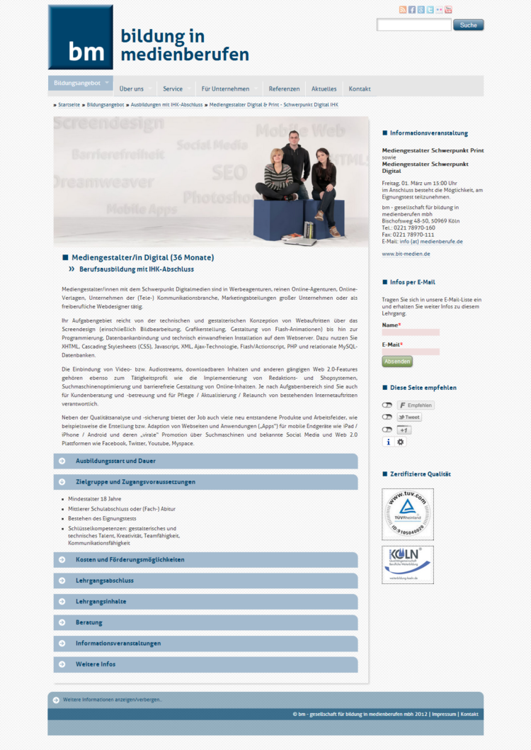 Medienberufe.de – Relaunch, Responsive Typo3 Template